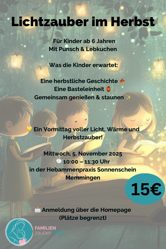 Lichtzauber im Herbst – Aktion für Kinder ab 6 Jahren in der Hebammenpraxis Sonnenschein am 5. November ab 10 Uhr bis ca. 11:30 Uhr (15€)